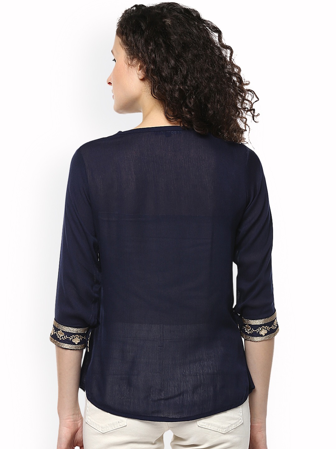 Women Navy Blue Embroidered Top