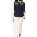 Be the first to review “Women Navy Blue Embroidered Top”